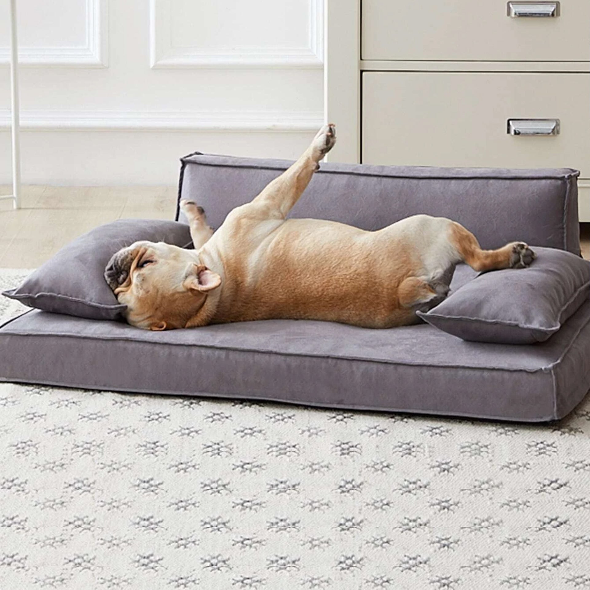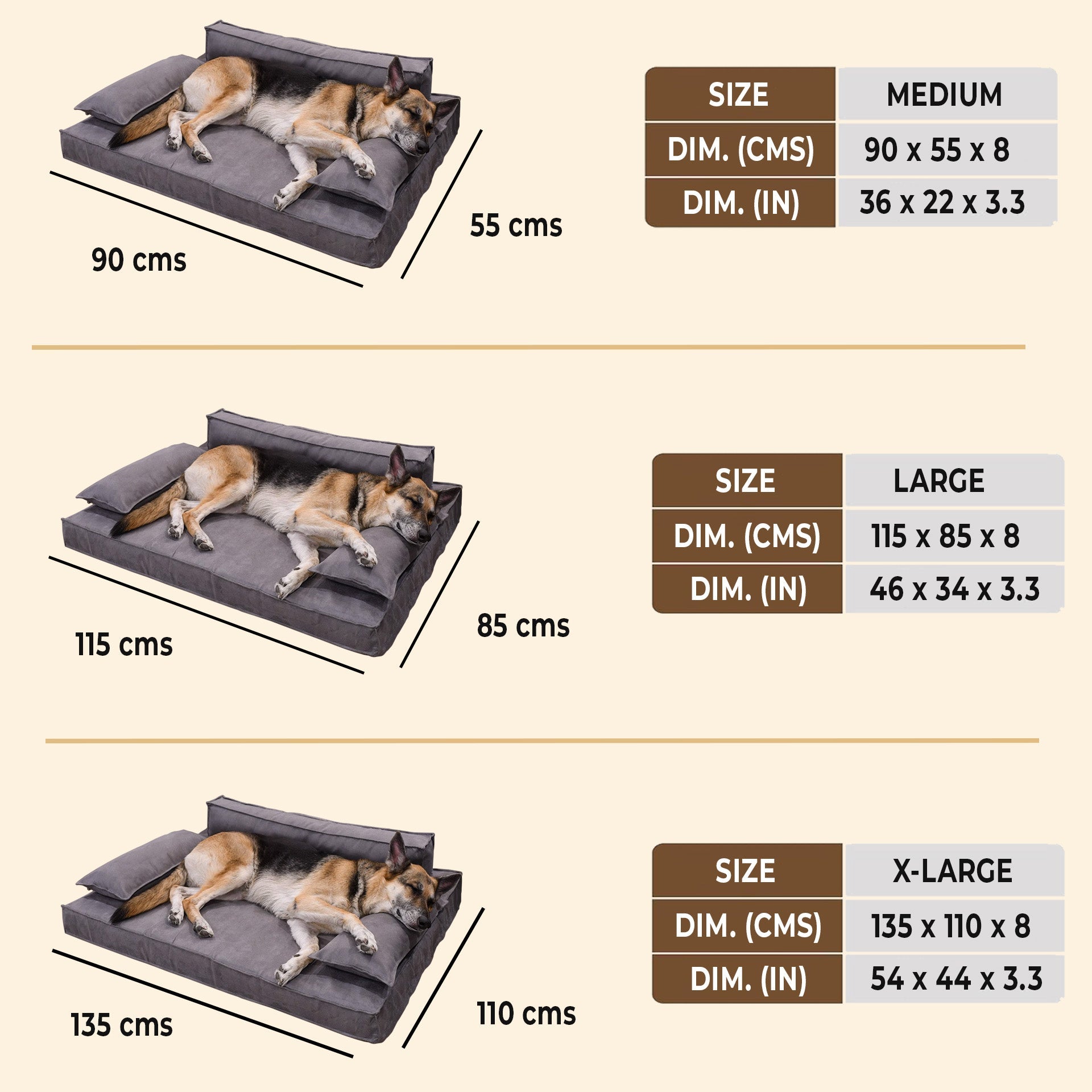 d with a high-density shredded memory foam blend, our cushions are designed to provide lasting comfort your pet will love.Fabric Wrapped in a soft knitted velour fabric with a velvet finish, this bed offers a luxurious, cozy feel thats perfect for snuggling up.Note 1) Actual colour on some occasions may vary slightly due to photography conditions and batch to batch fabric dying variations which are beyond our control.2) Personalised pet name print orders are custom-made just for you, featuring the unique name you selected. Because these items are specially crafted to your specifications, they are considered non-returnable.Medium Size Breeds Chihuahua, Pomeranian, Shih Tzu, Dachshund etc.Large Labrador, Poodle, Boxer, Bulldog etcX-Large Great Danes, Newfoundlands, Saint Bernards, Husky.Our classic pet bed sofa is designed to give your fluffy friend plenty of room to stretch out and get cozy in any position they love. The orthopaedic memory foam provides the perfect balance of comfort and support, making it an investment in your pets long-term health and happiness. Upholstered in ultra-soft velour faOur classic pet bed sofa is designed to give your fluffy friend plenty of room to stretch out and get cozy in any position they love. The orthopaedic memory foam provides the perfect balance of comfort and support, making it an investment in your pets long-term health and happiness. Upholstered in ultra-soft velour fa