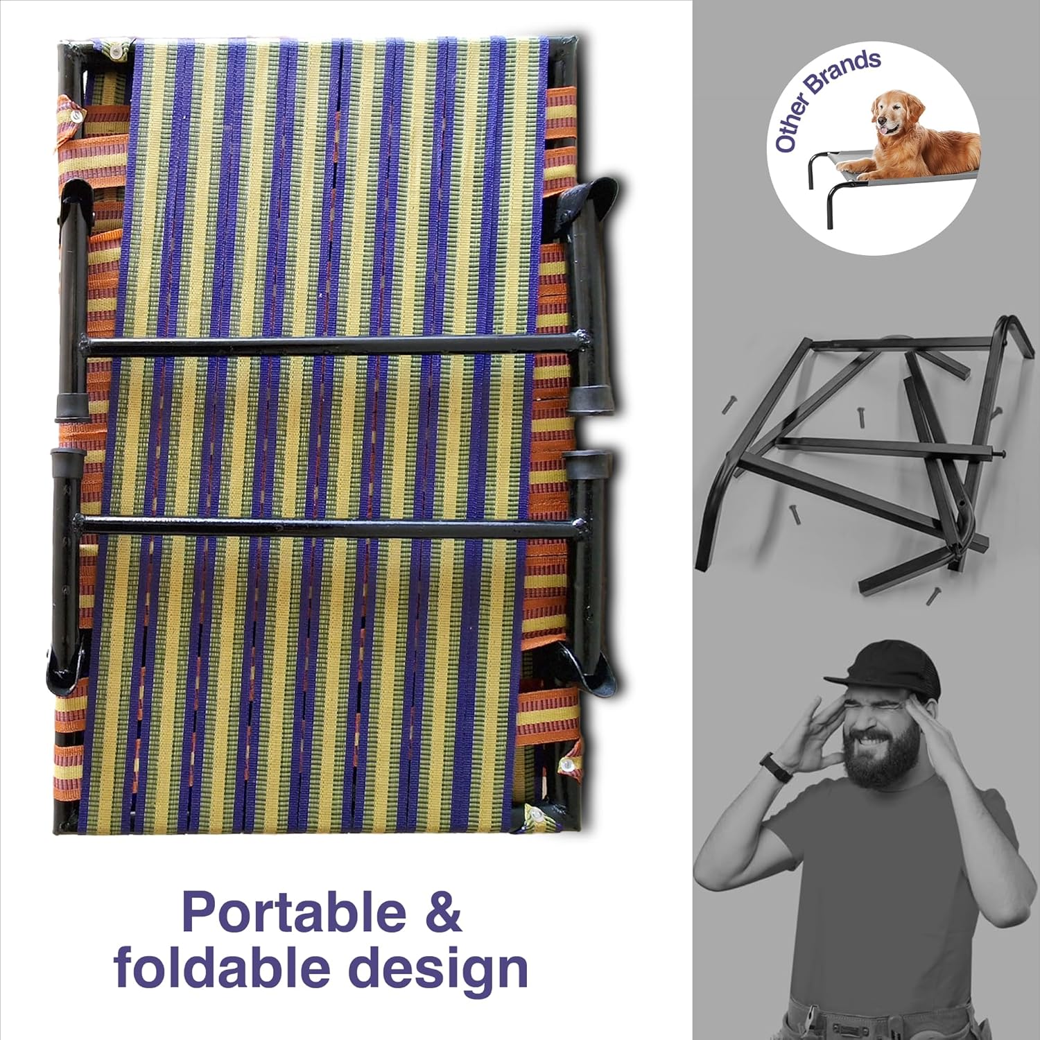 Royals Rore Leg Fold Pet Dog Bed Strong Quality Iron Frame With Strips Outdoor